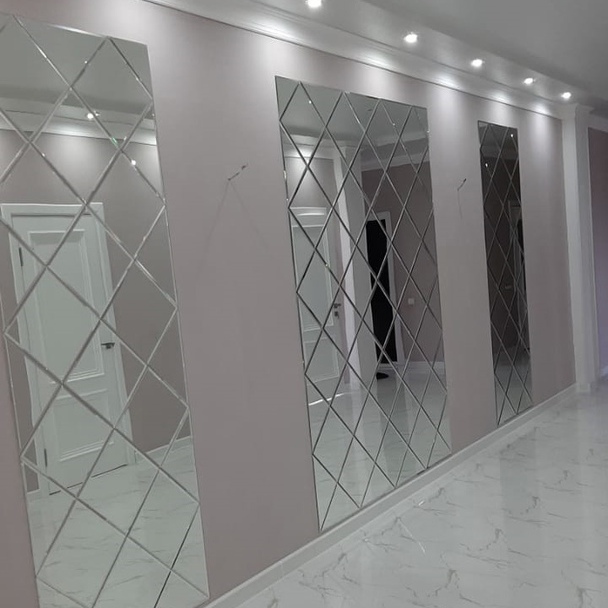 Использована серебряная зеркальная плитка «вытянутый ромб».